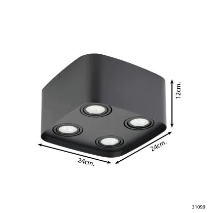 Eglo Decke Spot Arenzano Stahl Schwarz 18.8W 1380lm - 830 | Dimmbar - Geeignet für GU10