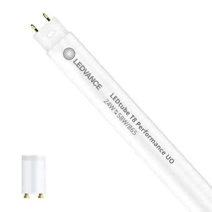 Bei der Ledvance LED Röhre 150cm | 6500K 24W - Performance UO handelt es sich um eine energieeffiziente LED-Röhre. Sie ersetzt Ihre konventionelle Leuchtstoffröhre mit 58W. Die Röhre ist 1513 mm lang und hat die Farbtemperatur 6500K - Tageslichtweiss. Die durchschnittliche Lebensdauer der LED-Röhre beläuft sich auf 50000 Stunden. Wir bieten Ihnen für dieses Produkt eine Garantie von 5 Jahre an.
