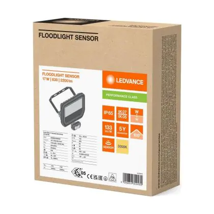 Ledvance Led-Scheinwerfer Aluminium Schwarz 17W 2200lm 100D - 830 | IP65 - Bewegungs- Und Lichtsensor - Symmetrisch