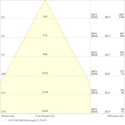 Der Abstrahlwinkel bezeichnet den Winkel, in dem das Licht aus der Lichtquelle ausgestrahlt wird. Er wird in Grad (D) angegeben. Je geringer die Gradzahl des Abstrahlwinkels ist, desto kleiner ist auch der Durchmesser des Lichtkegels, den die Lichtquelle produziert.
