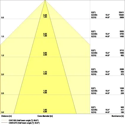 Der Abstrahlwinkel bezeichnet den Winkel, in dem das Licht aus der Lichtquelle ausgestrahlt wird. Er wird in Grad (D) angegeben. Je geringer die Gradzahl des Abstrahlwinkels ist, desto kleiner ist auch der Durchmesser des Lichtkegels, den die Lichtquelle produziert.