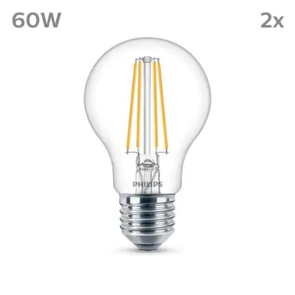 | Herstellername | Box 2 stuks - Philips LED Lamp Transparant - 60 W - E27 - Koelwit licht | |