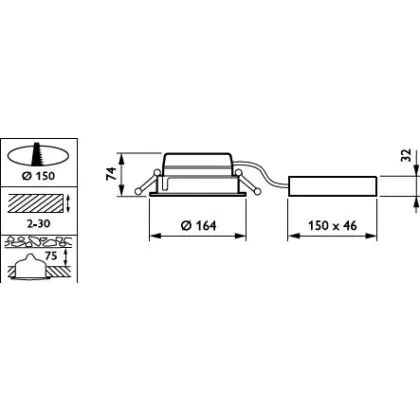 Der Ausschnitt einer Leuchte unterscheidet sich von den Abmessungen der Leuchte selbst und bezeichnet speziell die Grösse der Öffnung in der Decke, die für die sichere Montage der Lichtquelle benötigt wird.