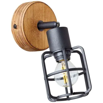Brilliant Gwen Applique Murale Métal Bois Noir | Convient pour 1x E14