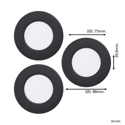 Eglo Connect.Z Smart Encastré Spot Éclairage de salle de bains Fueva 6-Z Plastique Noir 8.4W 1020lm - 827-865 Accordable Blanc + RGB | Dimmable
