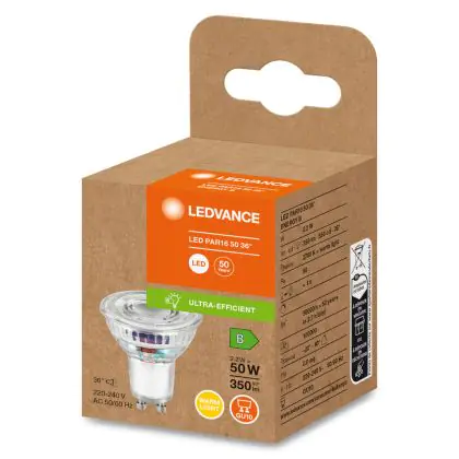 Description Ledvance Energy Efficiency Réflecteur Spot LED GU10 PAR16 2.2W 350lm 36D - 827 - Blanc Très Chaud |Équivalent 50W