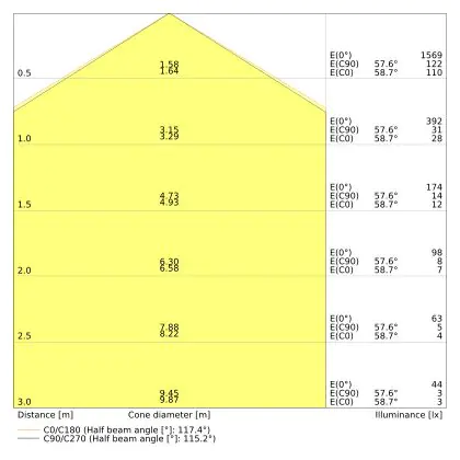 Le code couleur se compose de l'indice de rendu des couleurs (IRC) et de la température de couleur (Kelvin). Le premier chiffre indique le rendu des couleurs (1 = très mauvais rendu des couleurs, 9 = meilleure authenticité des couleurs). Le deuxième et troisième chiffre indiquent la température de la couleur. Exemple : Le code couleur "830" indique que la lampe a un bon rendu des couleurs (8) et une couleur de lumière blanche chaude (30 = 3000K). |