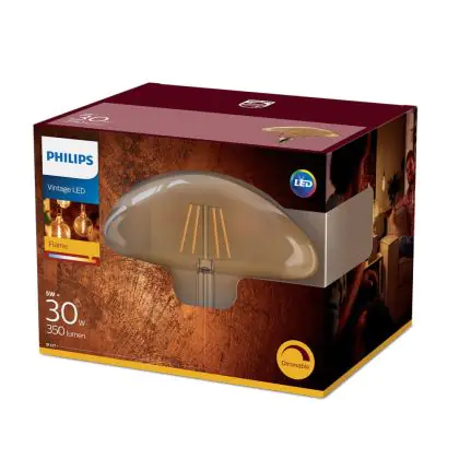 Cette ampoule Philips Vintage Classic LED Globe E27 Mushroom Filament Dorée 5W 350lm - 820 Blanc Très Chaud | Dimmable - Équivalent 25W avec son efficacité lumineuse de lumen par watt vous permettra de profiter d’un éclairage de qualité. Avec sa durée de vie de 15000 heures, vous n’aurez pas à vous soucier de son remplacement avant quelques années.