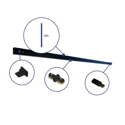 Rail Set Rail Monophasé 3 Mètre Noir | incl. Embout, Connecteur d’Alimentation et L-Connecteur