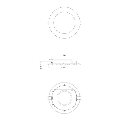 | Nom du fabricant | Budgetlight LED Downlight Slim V2.0 IP44 12W 4000K Cutout Ø150mm Frame Ø170mm | |