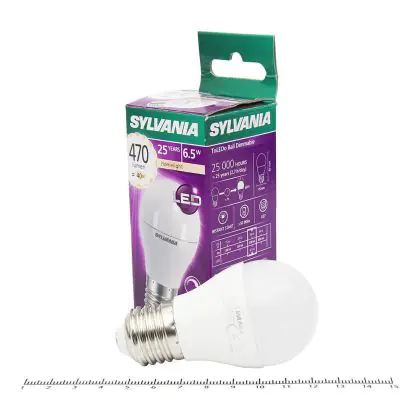 Cette ampoule Sylvania ToLEDo E27 Boule Dépolie 6.5W 470lm - 827 | Remplacement 60W avec son efficacité lumineuse de lumen par watt vous permettra de profiter d’un éclairage de qualité. Avec sa durée de vie de 25000 heures, vous n’aurez pas à vous soucier de son remplacement avant quelques années.